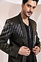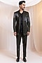 Featuring a hunter green blazer in linen satin base with zipper detail, beads, sequins and crystal embellishments. It is paired with a waistcoat and pants. Style it up with shoes for a reception, cocktail, sangeet or engagement ceremony.