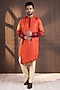 Orange Silk Hand Embroidered Ombre Kurta Set