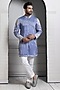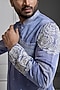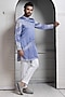 Featuring a pastel blue kurta in linen satin base with floral, beads, pipes, thread and cord work hand embroidery. It is paired with malai cotton pants. Accentuate it with a jacket for a wedding, sangeet ceremony or festive occasions, this ensemble is designed to make a lasting impression.
