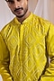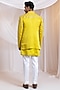 Yellow Linen Satin Mirror Work Achkan Set
