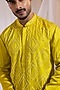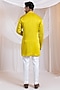 Featuring a yellow kurta in modal satin base with mirror embroidery. It is paired with cotton pants. Style it up with kolhapuri sandals for a festive occasion, wedding, haldi or engagement ceremony.