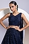 Featuring a navy blue draped lehenga in organza base with crystal hand embellishments. It is paired with a silk one shoulder strap blouse having an attached veil dupatta. Accentuate it with zircon jewellery and heels for festive celebrations or wedding ceremony.