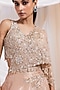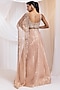 Featuring a nude pink lehenga in tissue base with scattered embellishments. It is paired with a tissue blouse having sequins, beads, zari and floral motifs hand embroidery, including a net detachable dupatta. Accentuate it with zircon jewellery and heels for festive celebrations or wedding ceremony.