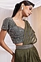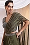Featuring an olive green draped saree in chinon and organza base with floral applique and cord details. It is paired with a silk blouse having bead and crystal embroidery. Accentuate it with zircon jewellery and heels for festive celebrations or wedding ceremony.