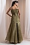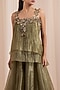 Featuring an olive green strappy peplum top in tissue base with 3D floral applique and metallic embroidery. It is paired with A-line flared pants. Accentuate it with zircon jewellery and heels for festive celebrations or wedding ceremony.