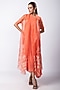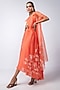 Featuring an orange asymmetrical dress in crepe taffeta base. It is paired with an organza jacket. Accentuate with statement jewellery and heels for a complete look .