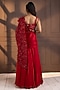 Red Chiffon Floral Applique Embroidered Draped Saree Set