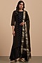 Featuring a black handwoven kurta in chanderi jacquard base with embroidery. It is paired with matching cotton palazzo pants and a chanderi zari striped dupatta.