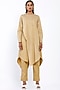 Featuring a dull gold asymmetrical tunic in premium cotton base with crossroad print. This contains only one piece.