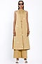 Featuring a gold tunic in premium cotton base with sunset print and slits. It is paired with matching slim pants.