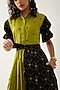 Leaf Green & Black Cotton Satin Printed Midi Dress