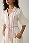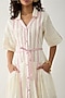 Featuring an off-white flared midi dress in cotton satin base with mosaic print, a v-neckline, waist-tie and button closure, including pleats detail. Accentuate it with minimal jewellery, stilettos and a sling bag for brunch date or sundowner.