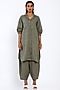 Featuring an olive green shirt tunic in linen base with a notch collar and dice print. This contains only one piece.