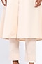 Featuring a peach tunic in premium cotton base with flared panels, voluminous sleeves, and contrasting buttons. It is paired with matching slim pants.