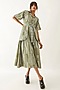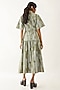 Sage Cotton Satin Floral Printed Gathered Midi Dress