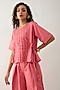 Featuring a salmon pink and red shirt in cotton satin base with print and stitch work. It is paired with pants. Accentuate it with minimal jewellery and block heels for a brunch date or sundowner.
