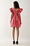 Salmon Pink & Red Cotton Satin Printed Pleated Mini Dress