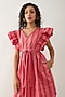 Featuring a salmon pink and red pleated mini dress in cotton satin base with print, tie-up, top stitch and ruffle detail. Accentuate it with minimal jewellery and block heels for a brunch date or sundowner.