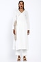 Featuring a white wrap tunic in linen base with piping and tie-up. This contains only one piece.