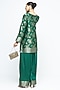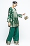 Featuring a green kurta in jaal silk base with floral brocade and banarasi detail. It is paired with satin farshi salwar pants. Accentuate it with polki stud earrings, a potli bag and kolhapuri heels for festive occasion, cultural events or mehendi ceremony.
