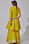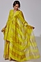 Featuring a lime yellow kalidar kurta in chanderi silk base with zari boota detailing. It is paired with matching chanderi silk sharara pants and an organza striped dupatta.