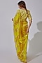 Lime Yellow Organza Striped Saree Set
