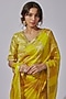 Featuring a lime yellow saree in organza base with zari stripes. It is paired with a matching blouse.