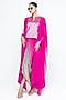 Pink Silk & Satin Asymmetric Dress With Organza Cape