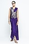 Featuring a purple waistcoat in raw silk and satin base with brocade detail. It is paired with a detachable pallu and a skirt. Accentuate it with polki stud earrings, a potli bag and metallic high heels for a wedding, cocktail or sangeet ceremony.