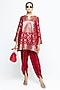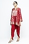 Featuring a red kurta in jaal silk and satin base with woven brocade details on the neck and sleeves. It is paired with dhoti pants. Accentuate it with polki stud earrings, a potli bag and kolhapuri flats for festive occasion, cultural events or sangeet ceremony.