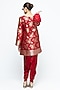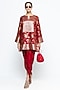 Featuring a red kurta in jaal silk base with floral brocade and banarasi detail. It is paired with satin dhoti pants. Accentuate it with polki stud earrings, a potli bag and kolhapuri heels for festive occasion, cultural events or sangeet ceremony.