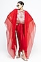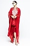 Red Silk & Satin Asymmetric Dress With Organza Cape