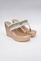 Featuring a pair of gold wedges in faux leather base with hand embroidery. It has 4 inch heels.
