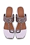 Featuring a pair of silver kolhapuri woven heels in faux leather base. It has a 3-inch heel.