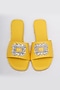 Featuring a pair of yellow flats in faux leather base with sequins embellishments.