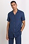 Featuring an ink blue shirt in linen base with a collar. This contains only one piece.