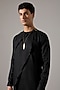 Featuring a black kurta in linen base with asymmetric panels detail. It is paired with pants. Style it with mojaris for a festive occasion, cultural event or pooja ceremony.
