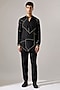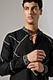Featuring a black kurta in linen base with engineered print. It is paired with trousers. Style it with mojaris for a festive occasion, cultural event, wedding or engagement ceremony.