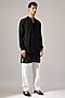 Featuring a black kurta in raw silk base with hand embroidery. It is paired with pants. Style it with mojaris for a festive occasion, cultural event, wedding or engagement ceremony.