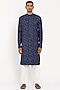 Featuring a blue kurta in cotton silk base. It is paired with contrasting pants.