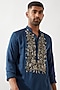 Featuring a blue kurta in tencel satin base with cutdana hand embroidery. It is paired with pyjama pants having drawstring and side pockets. Style it with mojaris for a festive occasion, wedding or engagement ceremony, exuding charm?and?elegance.