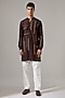 Featuring a brown kurta in raw silk base with hand embroidery. It is paired with pants. Style it with mojaris for a festive occasion, cultural event, wedding or engagement ceremony.