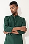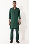 Featuring a green kurta in linen base with print and button down placket detail. It is paired with flat front trousers. Perfect wear for mehendi ceremonies, exuding charm and elegance.
