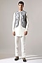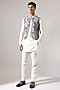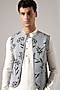 Featuring a grey quilted bundi jacket in cotton and linen base. It is paired with a kurta and pants. Style it with mojaris for a festive occasion, wedding, sangeet or engagement ceremony.