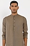 Featuring a khaki brown sherwood kurta in linen base. This contains only one piece.