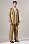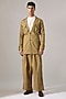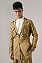 Featuring a khaki trench jacket in cotton base. It is paired with a white cotton satin asymmetric shirt and pleated pants. Style it with shoes for a complete look.