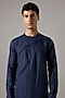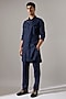 Featuring a navy kurta in linen base with curved asymmetric panel detail. It is paired with pants. Style it with mojaris for a festive occasion, cultural event or sangeet ceremony.