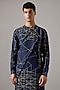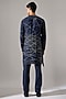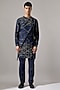 Featuring a navy kurta in linen base with print and asymmetric panels detail. It is paired with pants. Style it with mojaris for a festive occasion, cultural event or pooja ceremony.