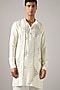 Featuring an off-white kurta in raw silk base with hand embroidery. It is paired with pants. Style it with mojaris for a festive occasion, cultural event, wedding or engagement ceremony.