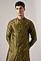 Featuring an olive kurta in chanderi base with caterpillar detail. It is paired with pants. Style it with mojaris for a festive occasion, cultural event, mehendi or pooja ceremony.